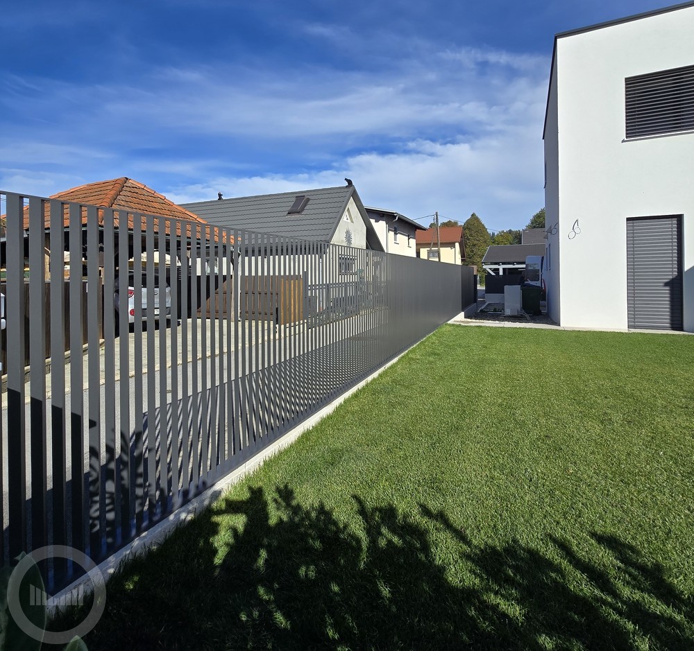 Ograda se sastoji od vertikalnih aluminijskih trokutastih letvica dubine 3 cm, širine 7 cm i nosivog profila širine 11 cm.