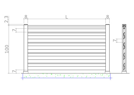 Ograda se sastoji od horizontalnih aluminijskih letvica sa »S« profilom, visina 145 mm, debljina 30 mm. Gore je završena sa rukohvatom.
