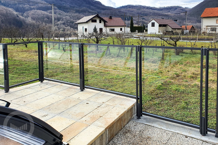 Ograda se sastoji od elemenata od VSG float-stakla debljine 4 mm + 4 mm; između je nalijepljena sigurnosna folija.