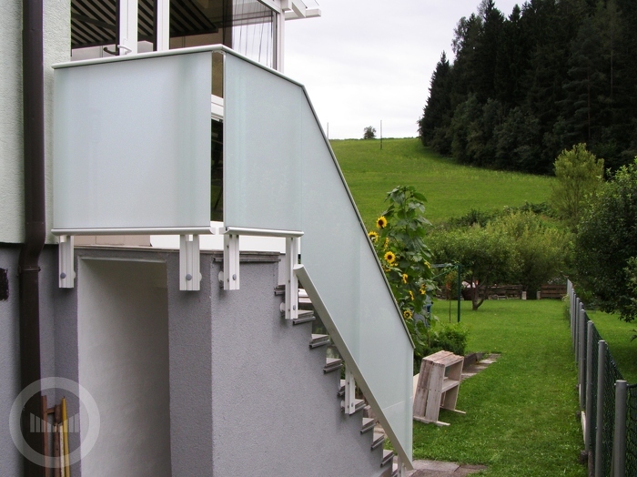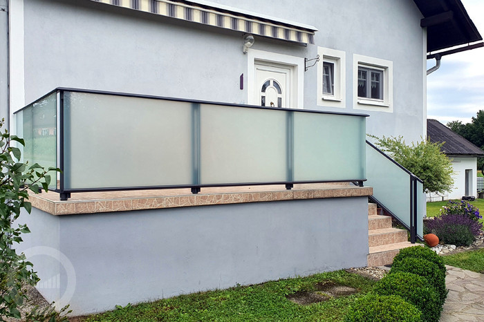 Ograda se sastoji od elemenata od VSG satinato-stakla debljine 4 mm + 4 mm; između je nalijepljena sigurnosna folija.