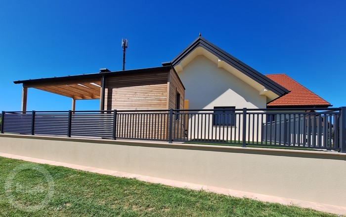 Vertikalna dvorišna ograda je u potpunosti izrađena od aluminija, a sastoji se od oštrorubih palica. Idealna je za moderan, minimalistički dizajn vašeg prostora, s jasnim i čistim linijama. To je vječna vanjska ALU ograda koja ne zahtijeva održavanje.
