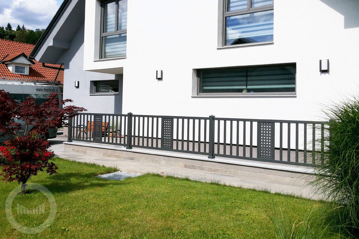 Ograda je ukrašena detaljem od perforiranog lima, oblikovane od jednakomjerne perforacije sa likom kvadrata (KV 20-48,5).