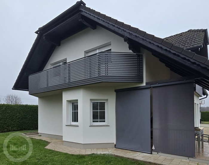 Ograda je gore završena sa rukohvatom izrađenim od najkvalitetnije ALU legure i dodatno zaštićenim bojom metalnog izgleda. Ograda se montira direktno na prednji dio balkona.