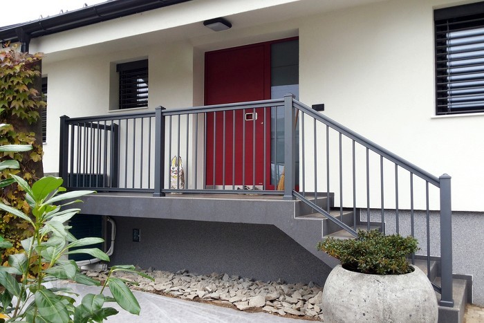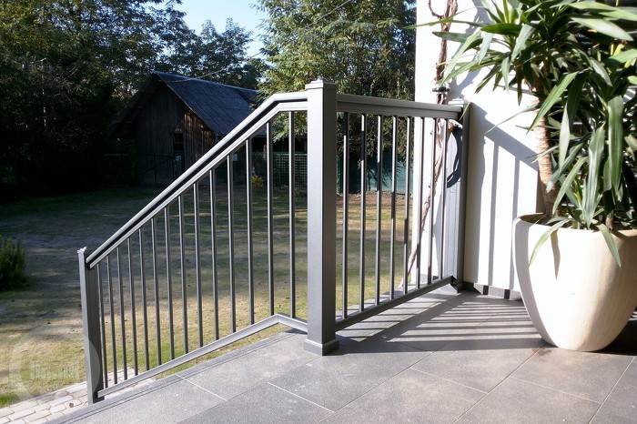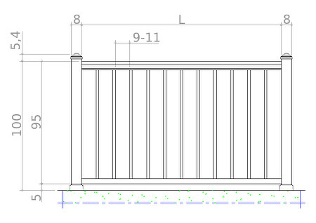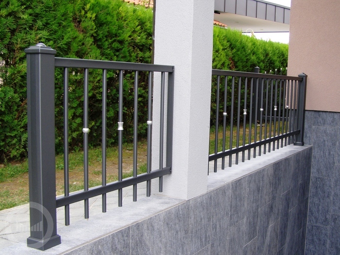 Ograda se sastoji od vertikalnih palica s promjerom od 20 mm. Gore je završena sa rukohvatom.
